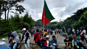 Die Hauptverkehrsroute zwischen Nord- und Südkolumbien ist seit fast einer Woche besetzt. Im Rahmen des Streiks der Indigenen wurden seit Dienstag morgen zusätzlich auch die Nebenrouten blockiert, um Druck auf die Regierung von Präsident Iván Duque auszuüben. Als die Demonstranten die Kontrolle über die alternativen Verkehrsrouten erlangten, griff die Aufstandsbekämpfungseinheit der Polizei (Esmad) ein. An unterschiedlichen Blockadepunkten setzte sie laut Berichten von Augenzeugen massiv Gewalt, Tränengas und selbstgebastelte Geschosse für Schrotflinten ein. Sogar gegen ausgewiesenes Personal einer medizinischen Brigade seien laut ONIC Trängengasgranaten gefeuert worden. Einige Protestierende wurden leicht verletzt. Kurz darauf wurde vom Blockadeposten La Agustina auf der Panamericana zwischen Santander de Quilichao und Popayan berichtet, dass das Militär mit scharfer Munition auf Indigene feuere. Fast gleichzeitig berichteten staatliche Quellen und Zeitungen online, dass ein Polizist erschossen wurde, mehrere Polizisten Schusswunden erlitten hätten und drei Soldaten angeschossen worden seien. Laut offiziellen Angaben seien sie von demobilisierten Farc-Mitgliedern angegriffen worden, die den Protest infiltieren würden…“ – aus dem