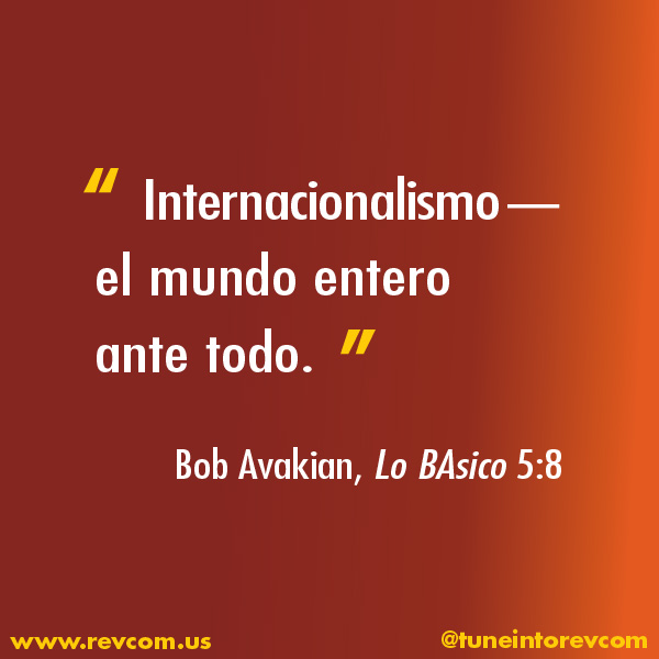 En oposición directa a la venenosa perspectiva del chovinismo pro estadounidense, la orientación que hay que defender firmemente y por la que hay que luchar ferozmente es el principio básico y la verdad sencilla, pero profunda, de que “La vida de los estadounidenses no es más importante que la de la gente de otros países” e “Internacionalismo — el mundo entero ante todo”, que se encuentra en Lo BAsico 5:7 y 5:8.