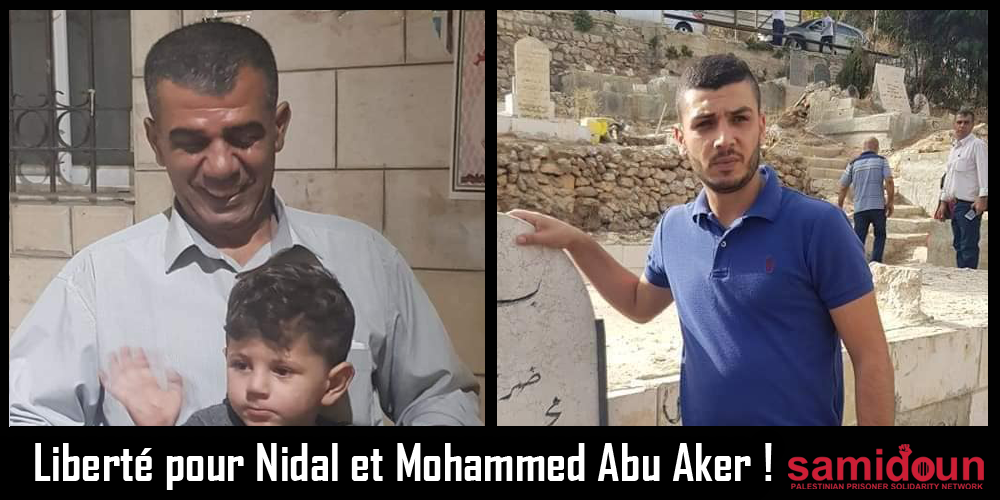 Nidal Abu Aker, dirigeant communautaire de longue date et journaliste dans le camp de réfugiés de Dheisheh, et son fils Mohammed Abu Aker, étudiant à l'université, ont été saisis par les forces d'occupation israéliennes qui ont envahi le camp tôt le matin du jeudi 1er novembre. Tous deux sont des défenseurs éminents des droits des Palestiniens et d'anciens prisonniers qui ont été incarcérés à plusieurs reprises pour leur engagement en faveur de la libération de la Palestine.
